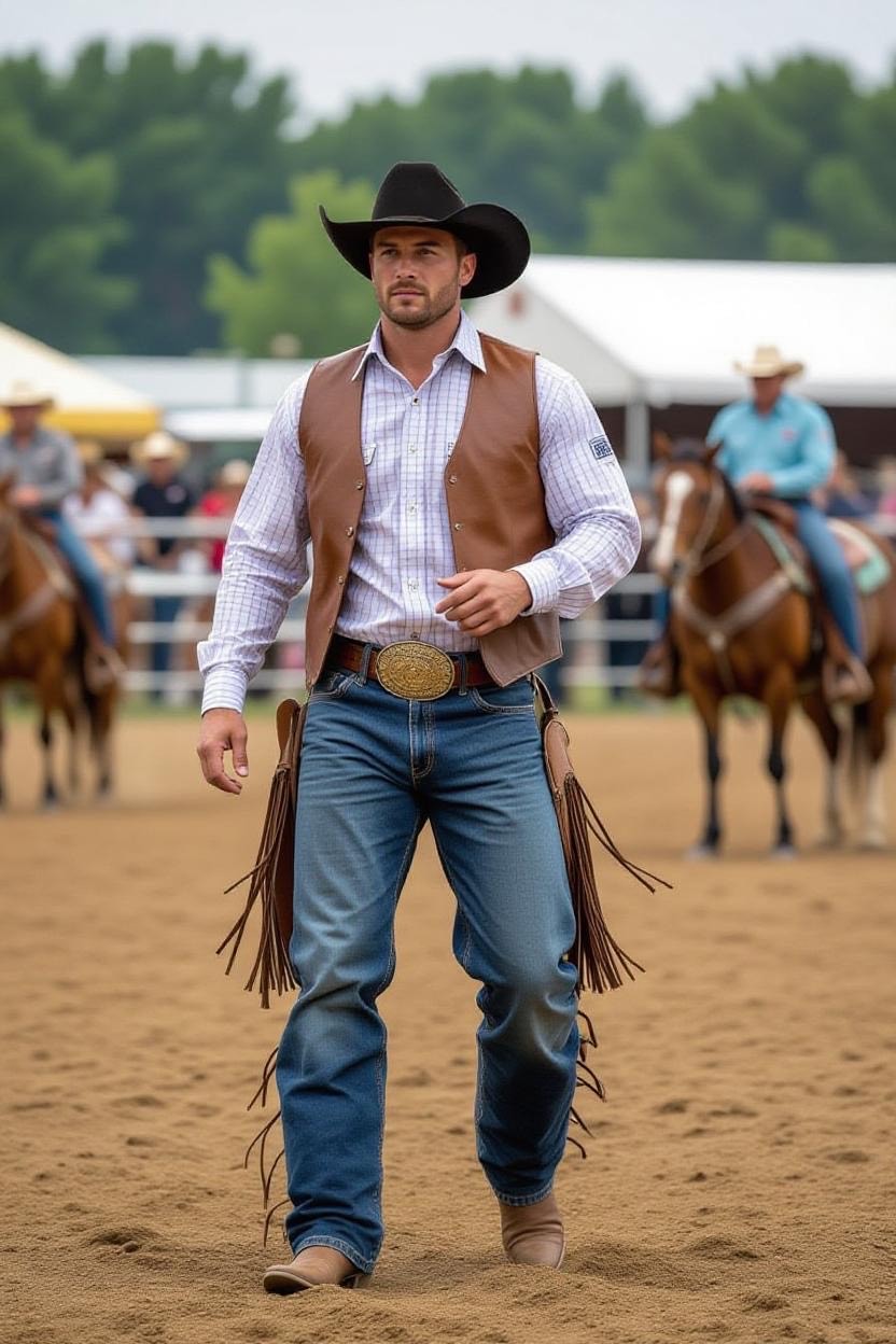 You should wear tight-fitting blue jeans and cowboy boots to go along. You should wear a cowboy hat all evening, removing it only when pardoning yourself, greeting a lady, or saying grace. Carry a pair of dice in your pocket too, as you love gamblin’ and are feeling pretty lucky. You don’t mind at all that the stakes are high tonight.
