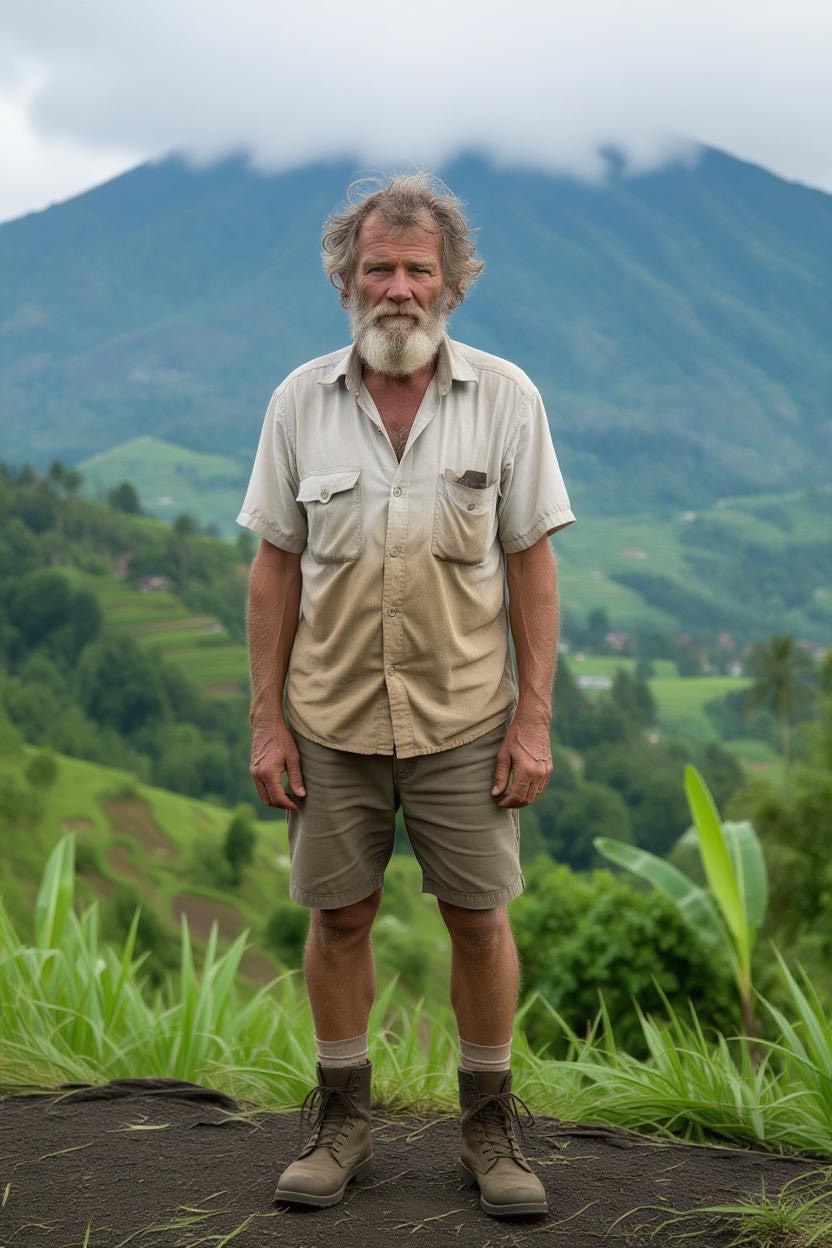 Wear old, ragged clothing, such as a faded flannel and a pair of patched jeans or shorts. An unshaven face or beard and tussled hair are a must for this role. An old worn-out hat and wooden walking stick would be a nice touch. Place a pipe in the front pocket of your shirt, and take it in and out of your mouth as a nervous habit. Absolutely no jewelry.
